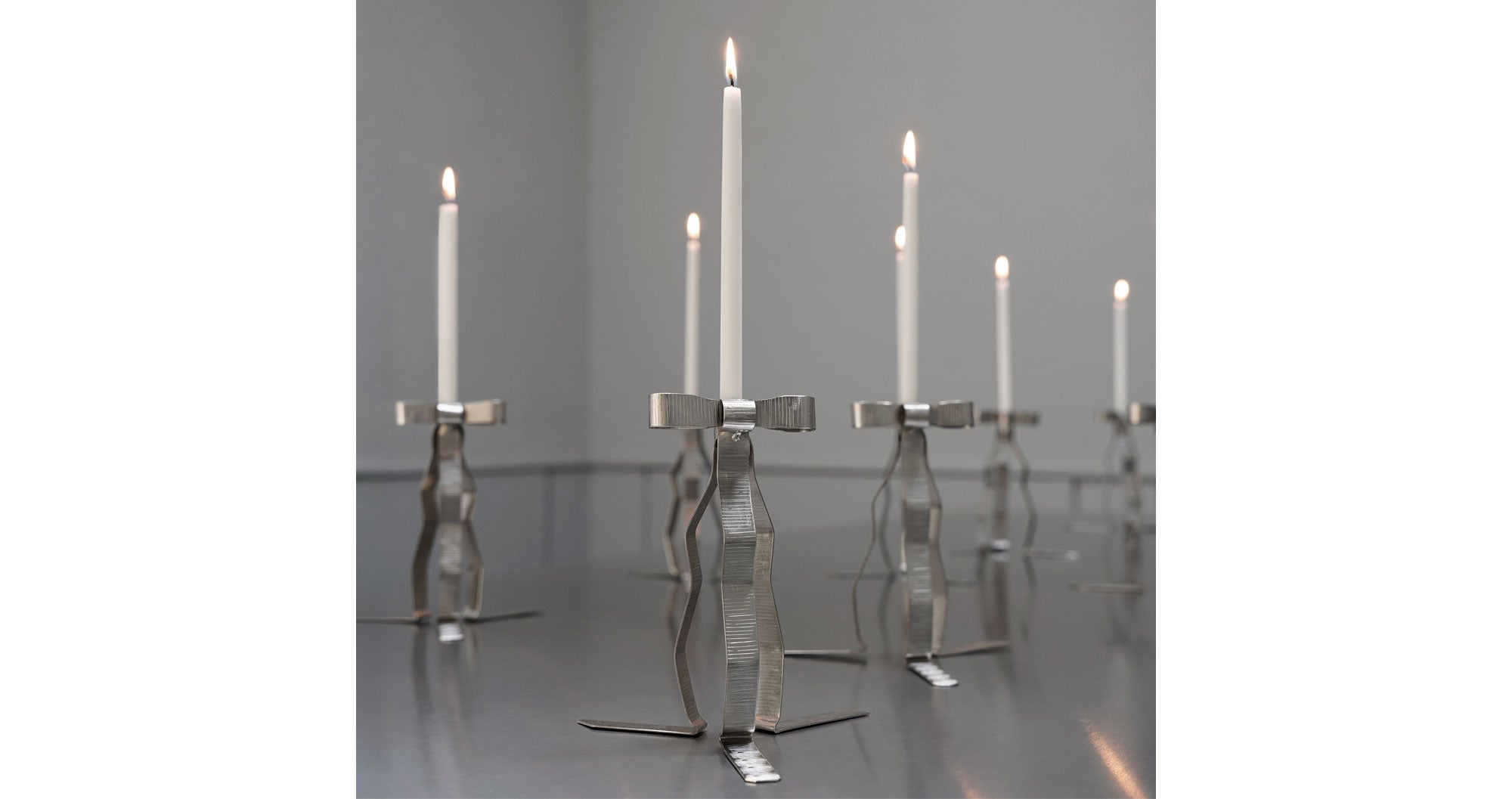 The Bow Candle Holder was originally made for the quiet rituals of winter, catching the soft glow of Christmas lights. This silver edition carries that same sense of ornament and gesture, but moves beyond the season it came from. Designed for longer days, open windows, and tables set for celebration. A piece that feels just as natural in spring and summer as it once did in winter.