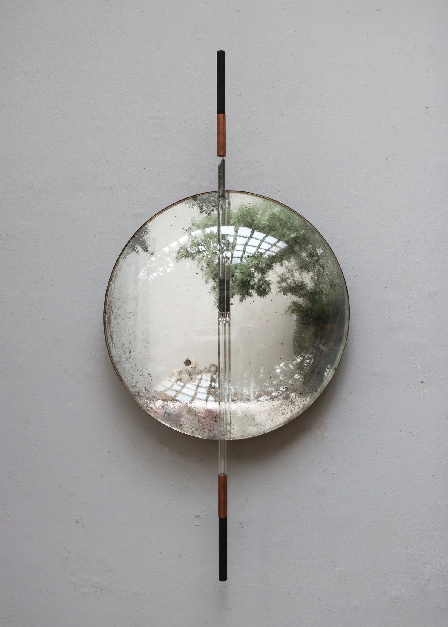 “Embrace Melancholy – the Mirror/Hourglass” by Belgian designer Nel Verbeke for studio Brut Collective. Made in glass, silver mirror, copper and ashed ash wood.