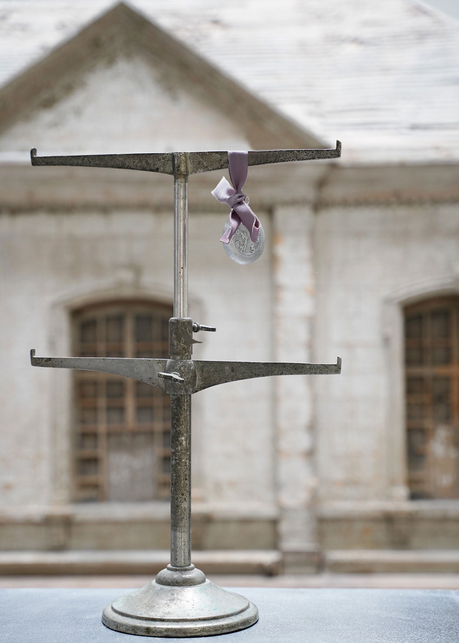 Taschenuhr aus Aluminium mit handgefärbtem Band in Beere.