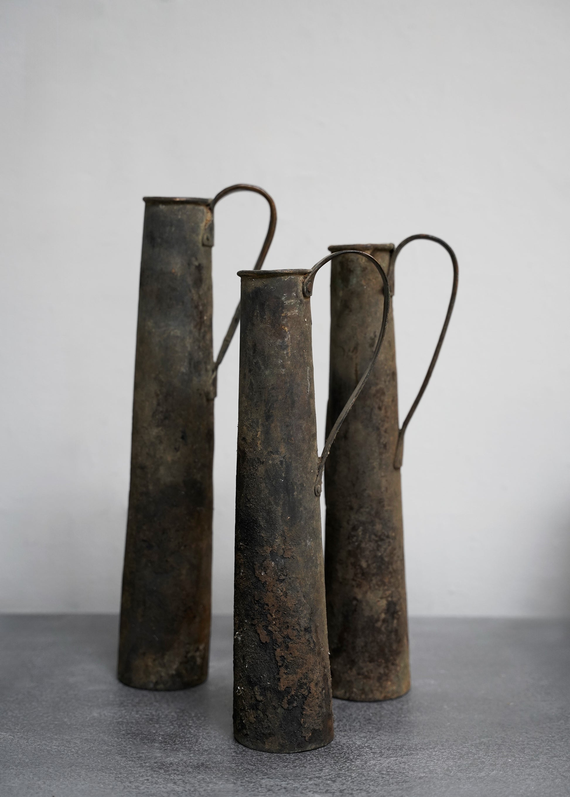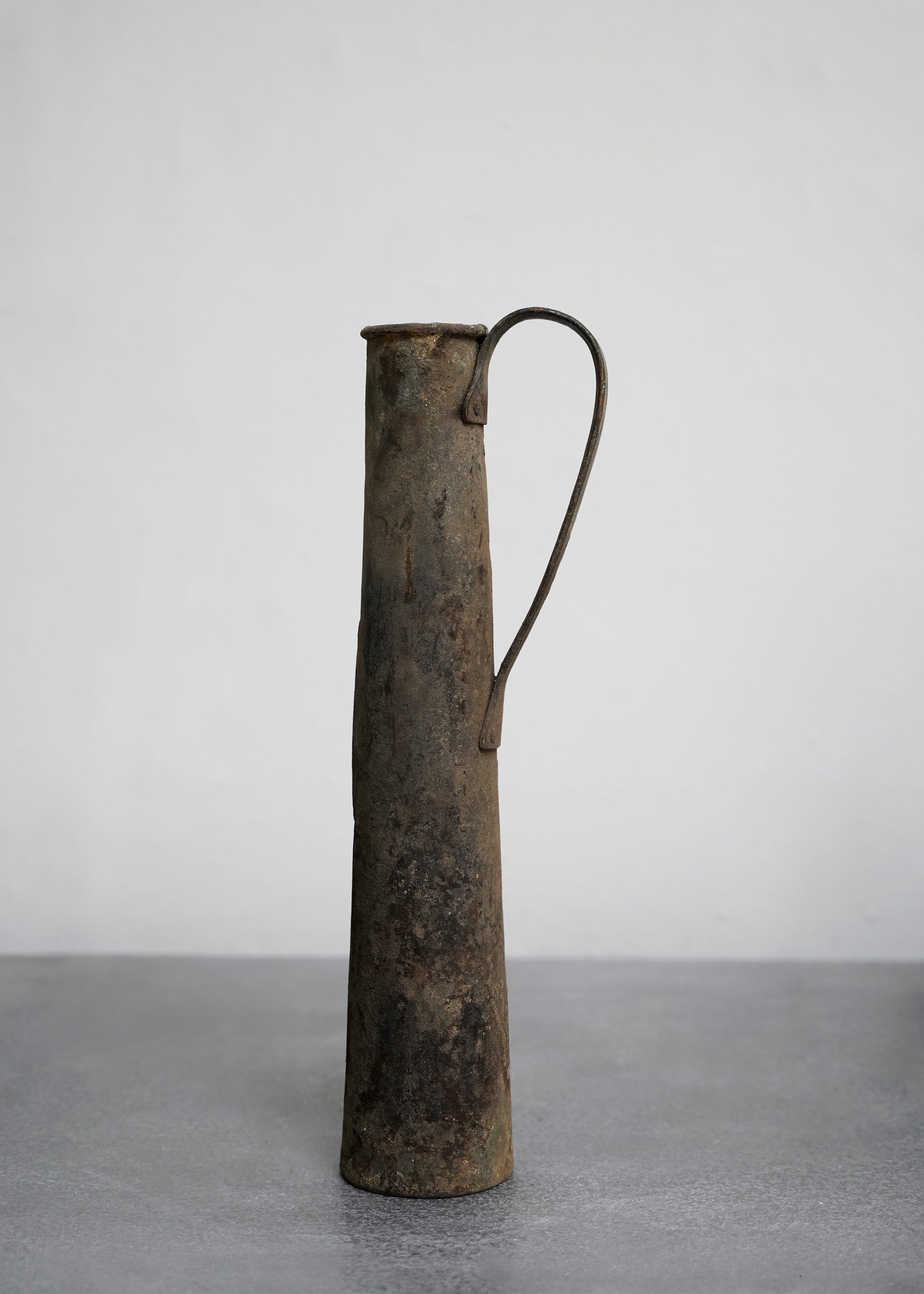 Bitte beachten Sie, dass der Krug aufgrund seines Alters nicht flüssigkeitsdicht ist. Er eignet sich jedoch wunderbar als Gefäß für Trockenblumen oder kann einfach so präsentiert werden.