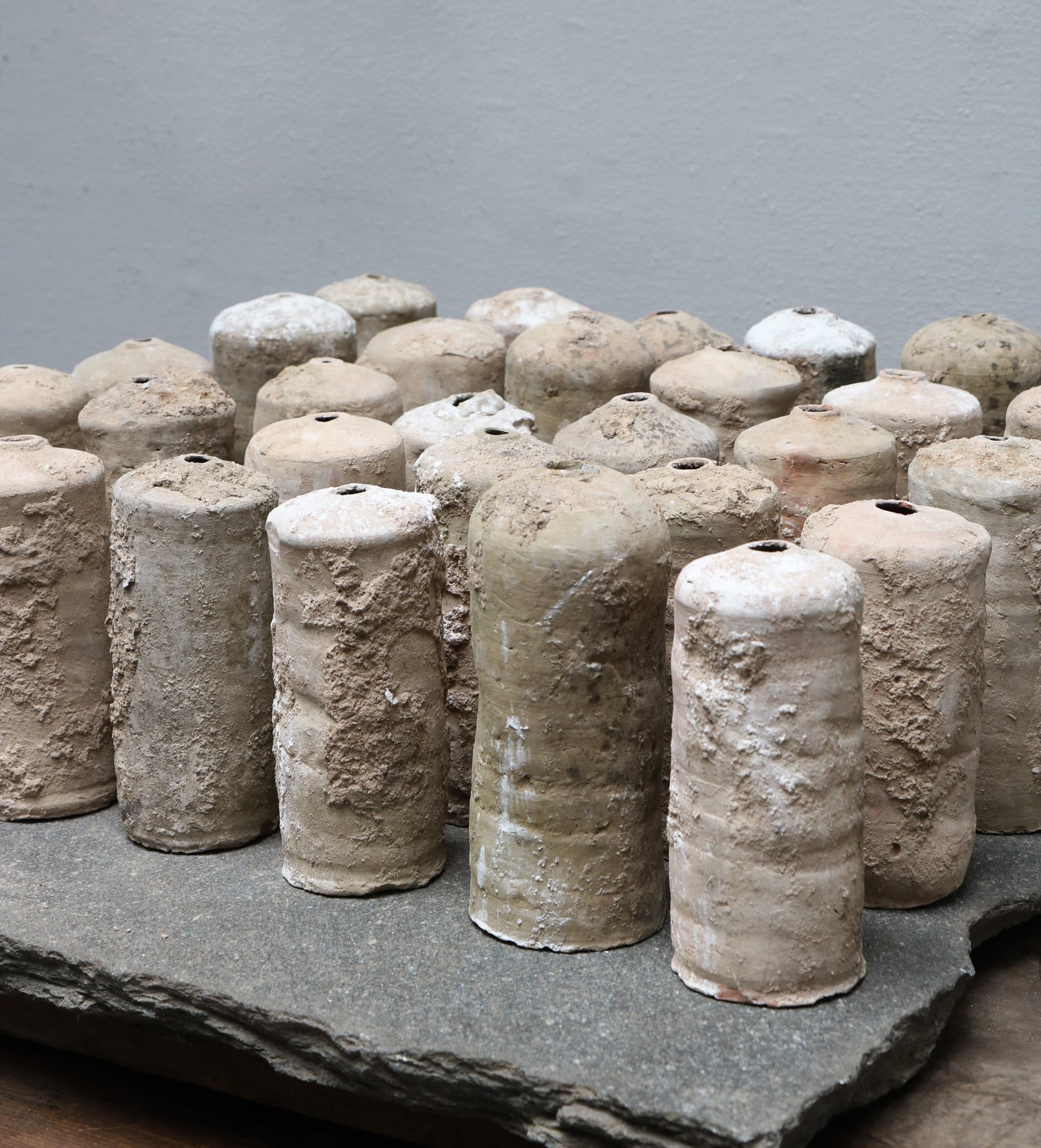 Antikes italienisches Objekt aus Terrakotta. Einige der Objekte eignen sich für getrocknete Blumen, da sie oben und unten Löcher haben und daher nicht flüssigkeitsdicht sind. Die Objekte sind alle Unikate und variieren daher leicht in Aussehen und Farbe. Sie alle haben eine schöne Patina, die ihnen einen antiken Charakter verleiht. Der Preis gilt für ein Objekt.