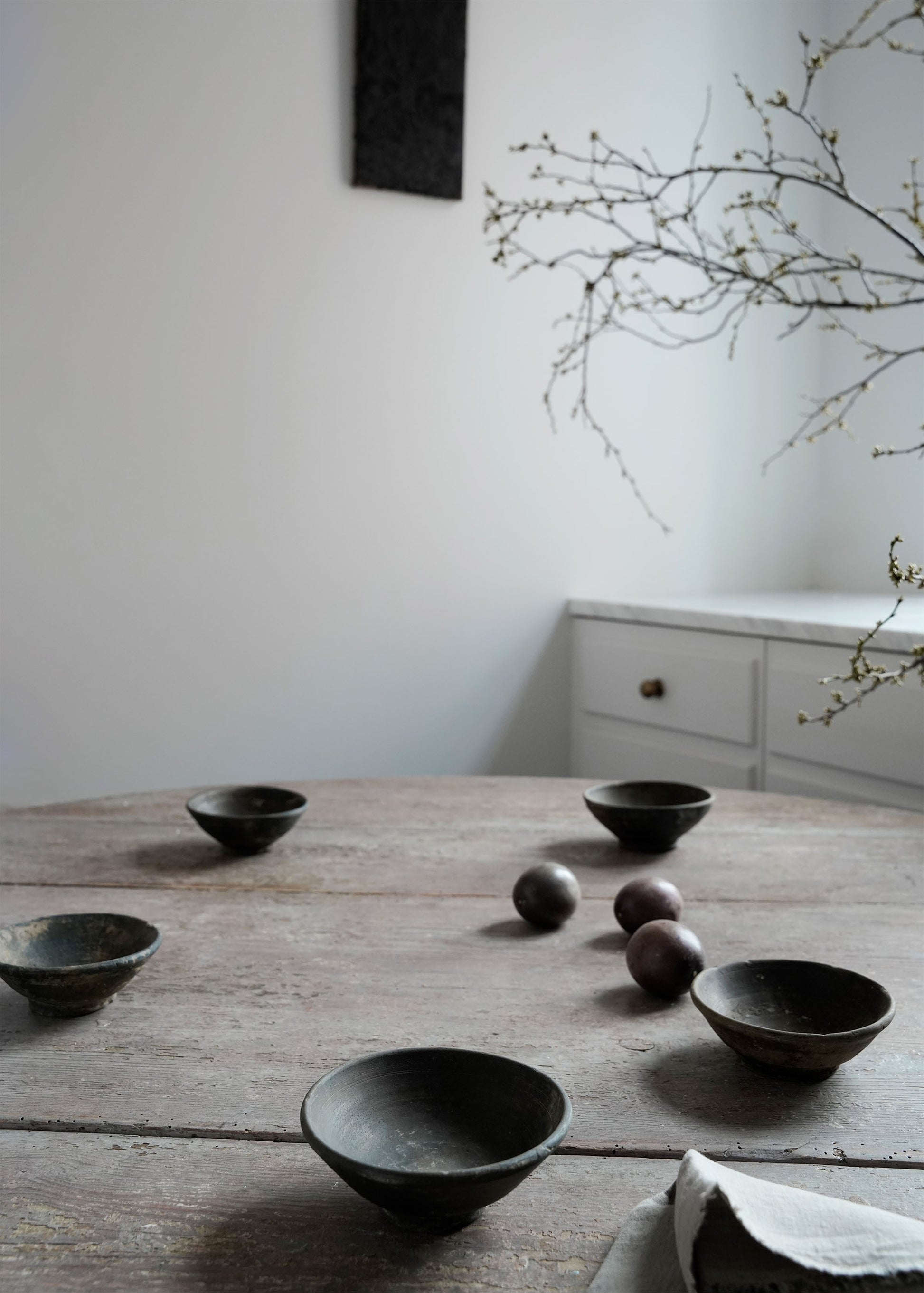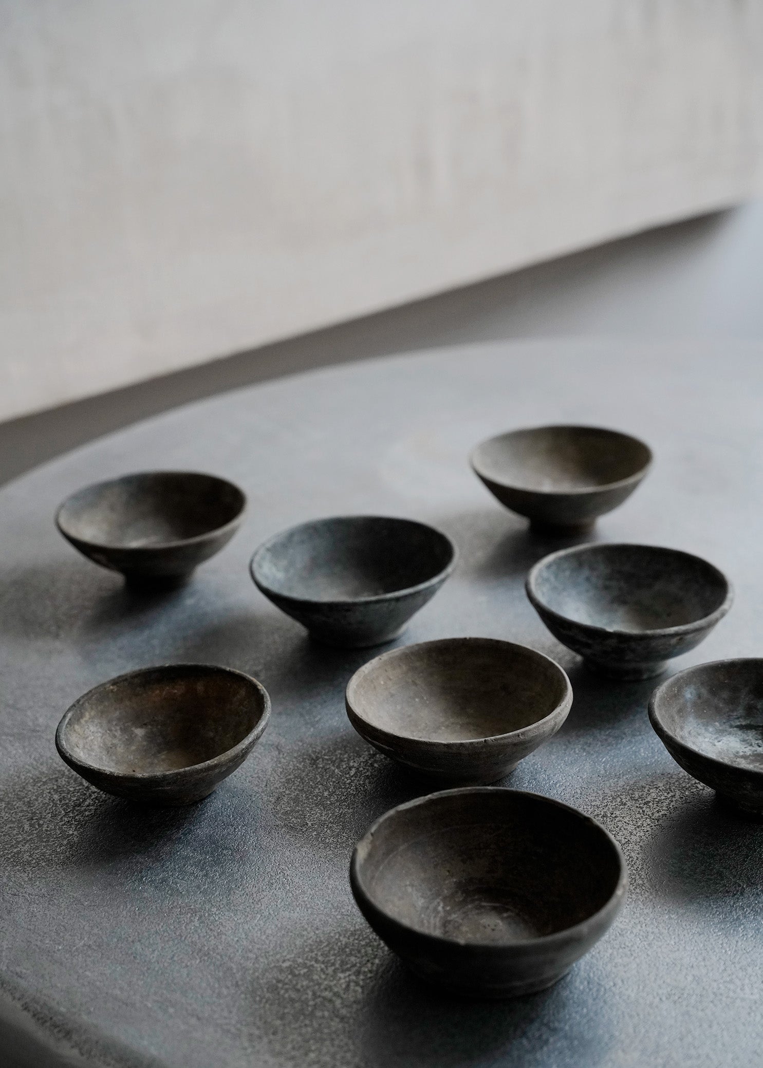 Schalen aus gebranntem Ton. Die Objekte sind alle Unikate und unterscheiden sich daher leicht in Aussehen und Farbe. Sie alle haben eine schöne Patina, die ihnen ein antikes Aussehen verleiht.