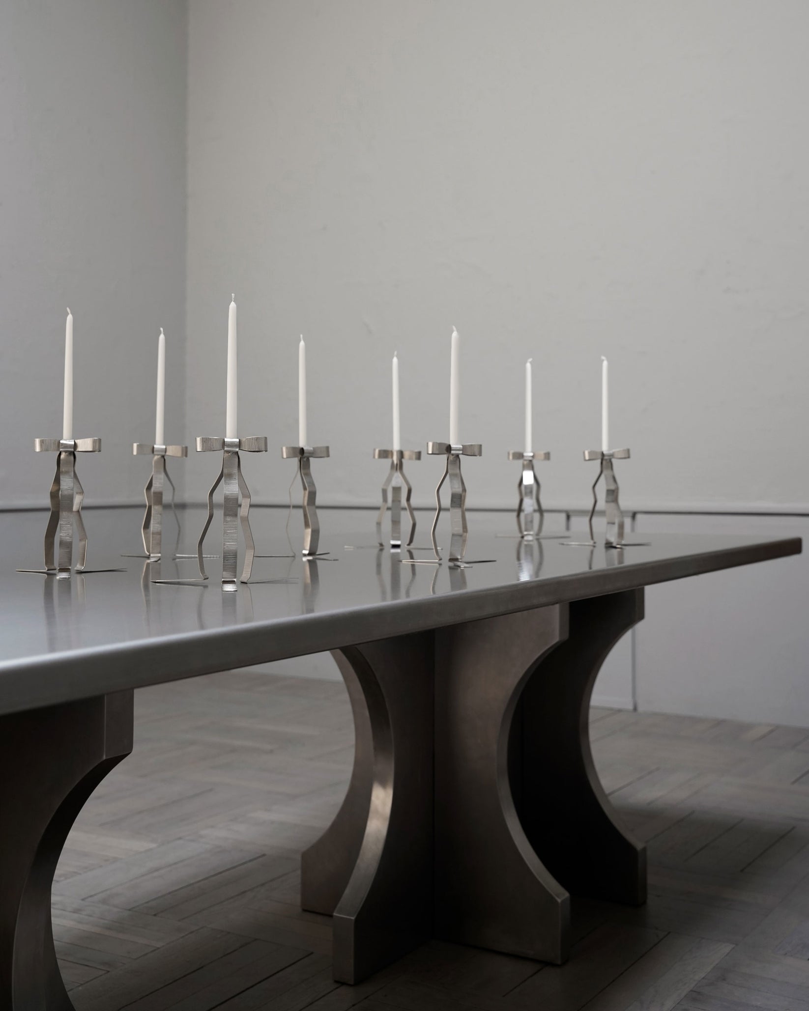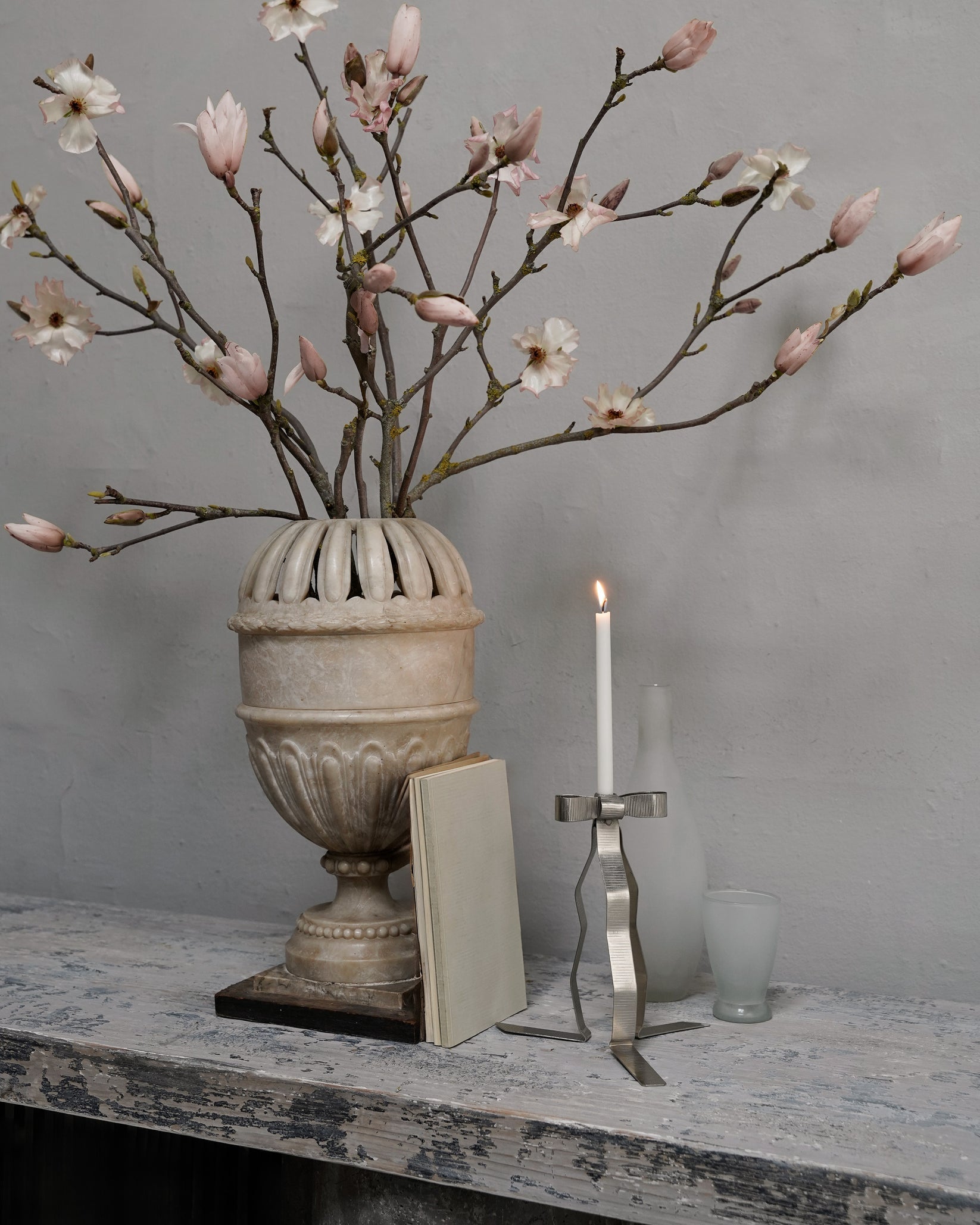 Schöner Kerzenhalter in Form einer Schleife aus Messing. Wird mit drei Kerzen geliefert.