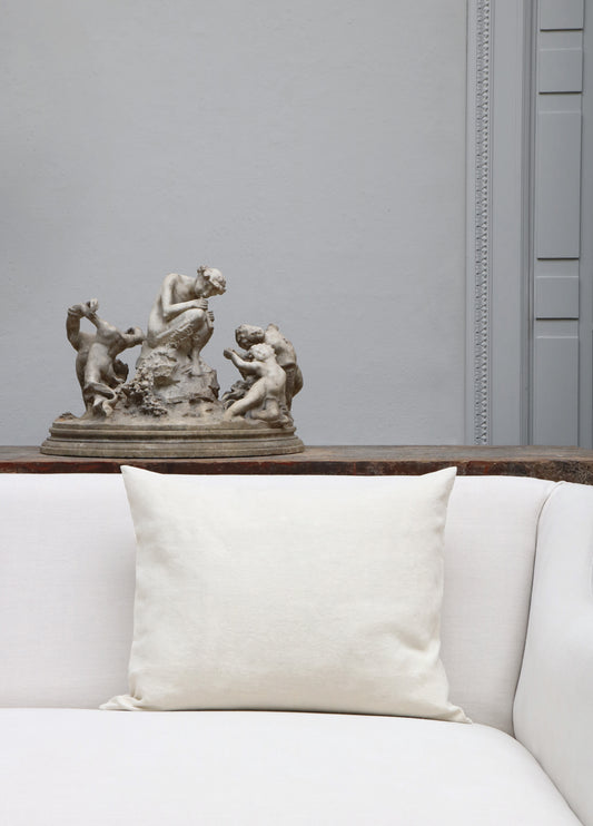 Das schwere Leinenkissen „Society“ in der Farbe „Canapa“ – einem wunderschönen hellen Beige. Das Kissen stammt von der italienischen Marke Society Limonta und ist mit Entenfedern gefüllt. Die Füllung des schweren Leinenkissens „Society“ in „Canapa“ ist fest und dennoch weich, wodurch das Kissen sowohl für das Sofa als auch für das Bett ideal ist.