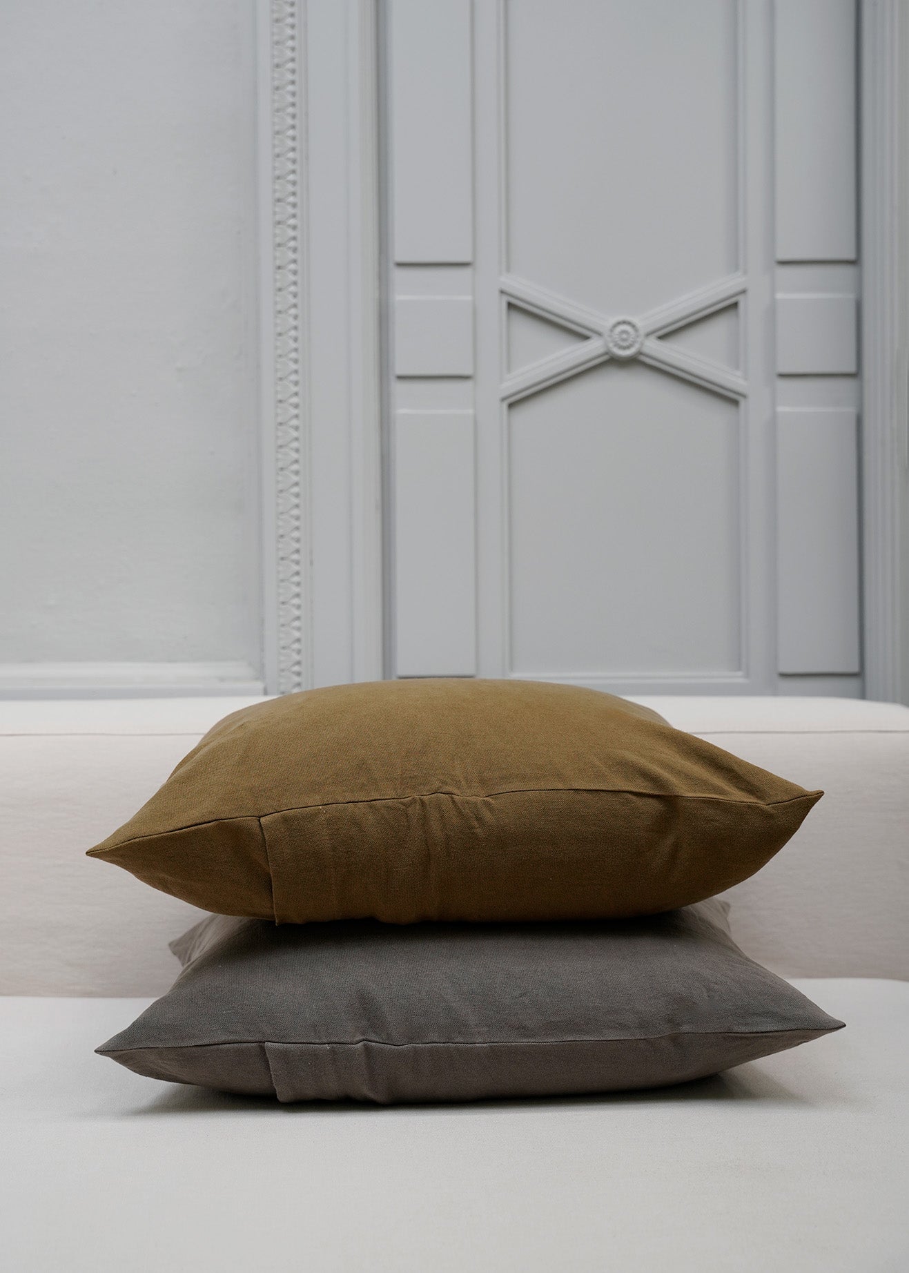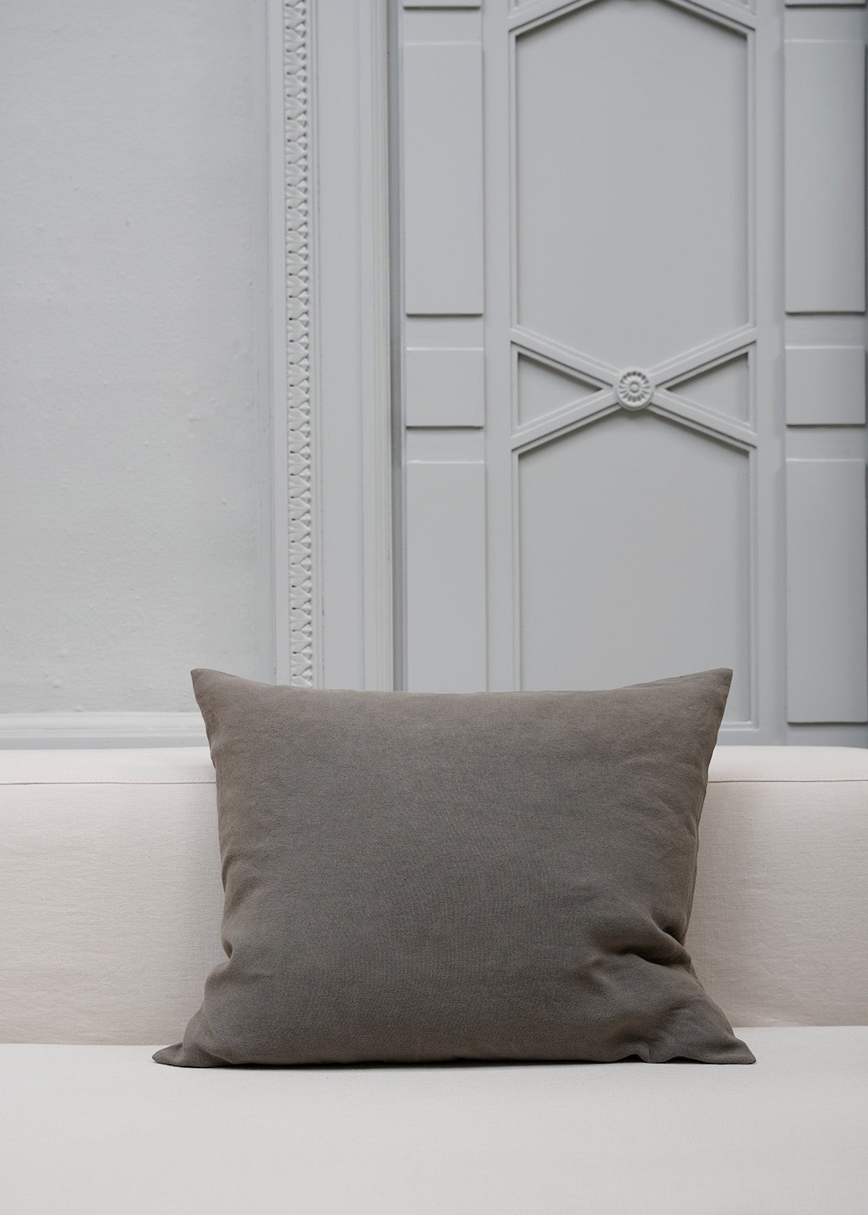 Schweres Leinenkissen in der Farbe „Pepe“ – einem wunderschönen Grau. Das Kissen stammt von der italienischen Marke Society Limonta und ist mit Entenfedern gefüllt. Die Füllung des schweren Leinenkissens Society in Pepe ist fest und dennoch weich, wodurch das Kissen sowohl für das Sofa als auch für das Bett ideal ist.