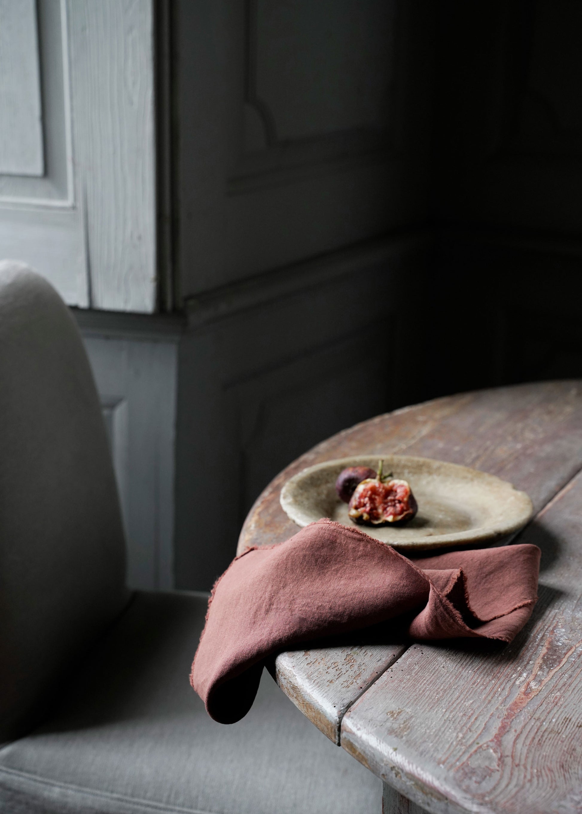 Leinenserviette von Society Limonta in der Farbe „Mattone“ – einem wunderschönen Rotton.