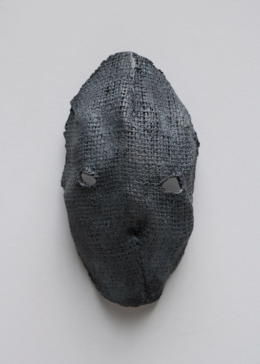 Artwork “BEGOT(1122020C)” made in bronze, by the Danish artist Kaare Golles. The art piece is a mask casted in bronze in a mold of the natural fiber jute. The sculptural piece is made to be hung on the wall.