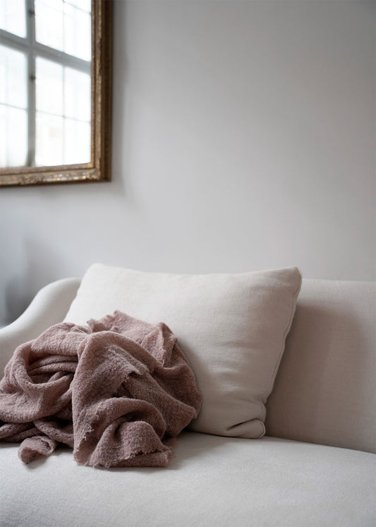 A luxurious quilted blanket made from linen by Society Limonta, in “Verbena” – a beautiful soft pink color. The blanket is extremely soft and pleasant to the touch.