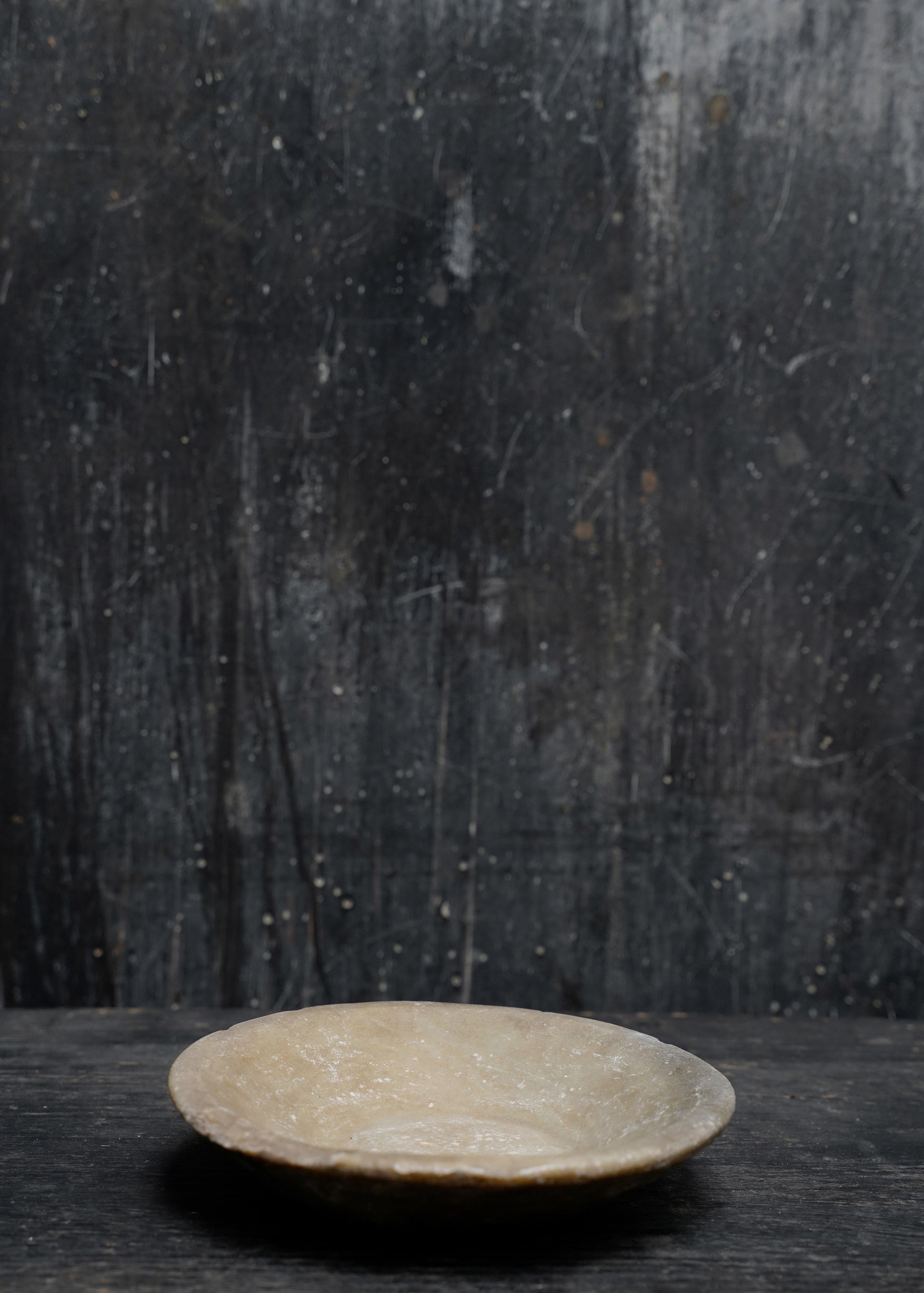 One-of-a-kind bowl carved in natural stone with aged patina.