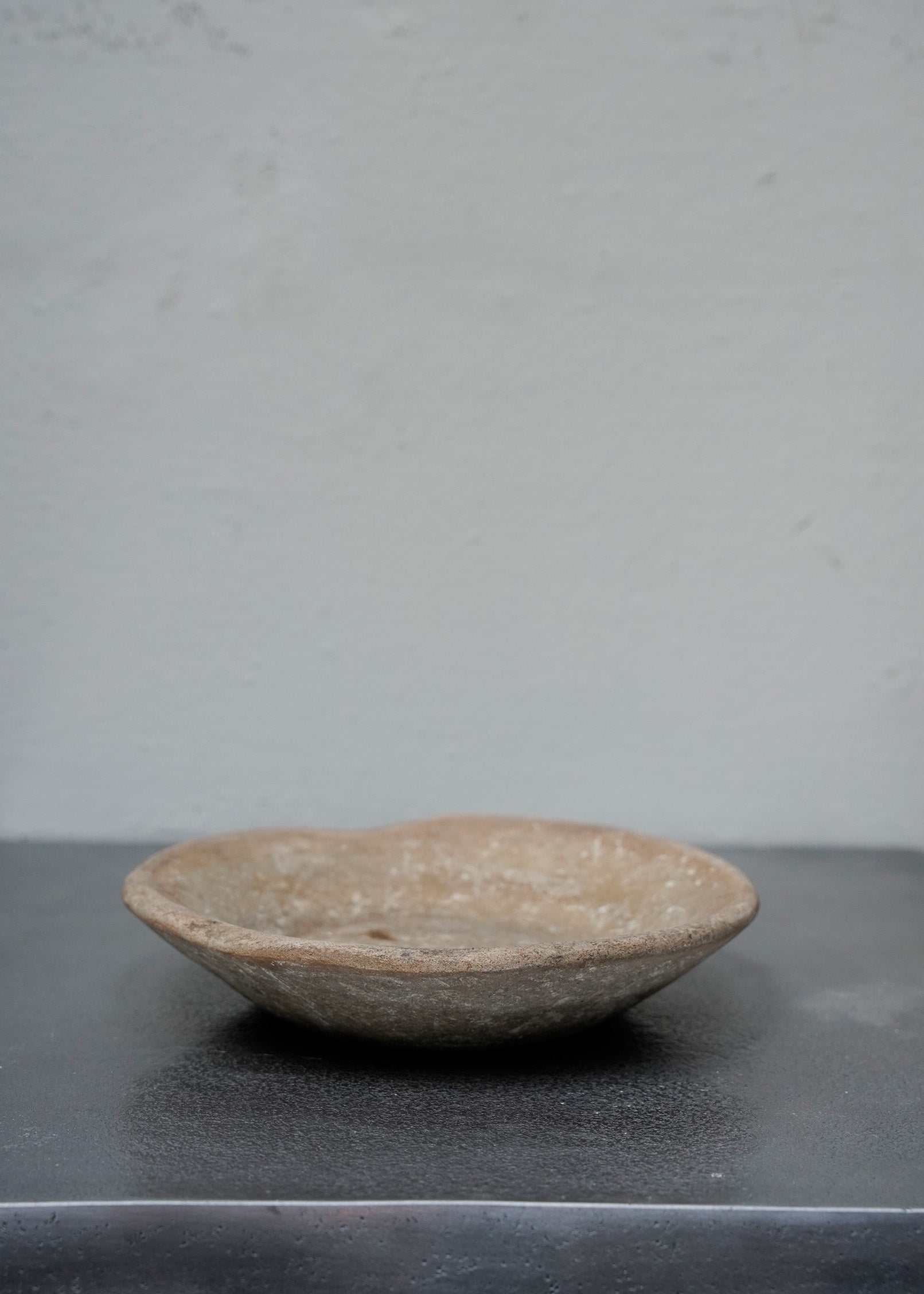 One-of-a-kind bowl carved in natural stone with aged patina.