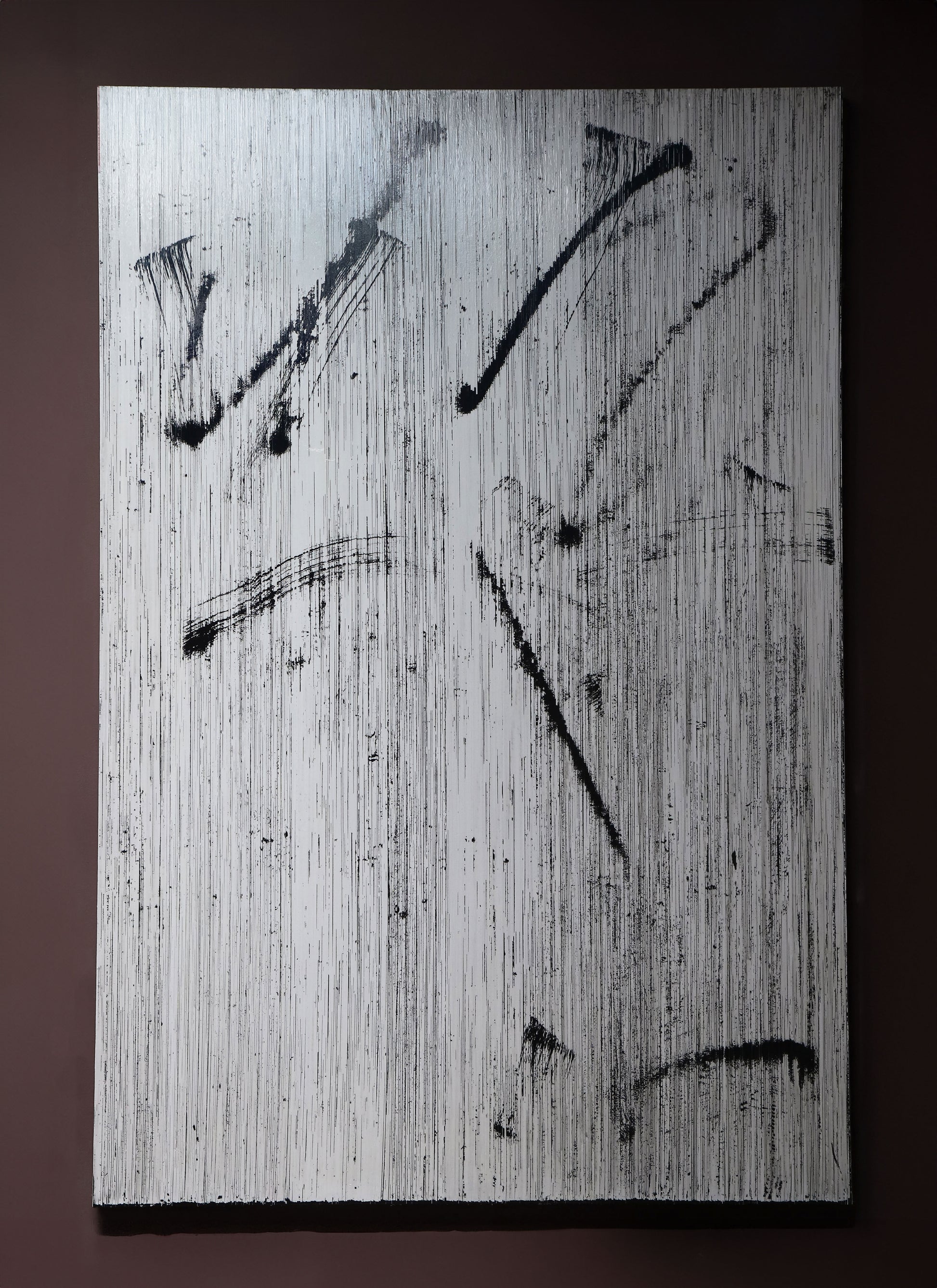 Hildebrandt’s signature media is cassette tapes and vinyl, which he collages and assembles into apparently minimalist yet latently romantic paintings, sculptures and installations. Resting in silence behind the glossy surface of his analog aesthetics, which verges on black and white monochrome, music and cinema haunt his practice. Whether pictorial or sculptural, all of his works contain prerecorded materials, which he references in the titles.
