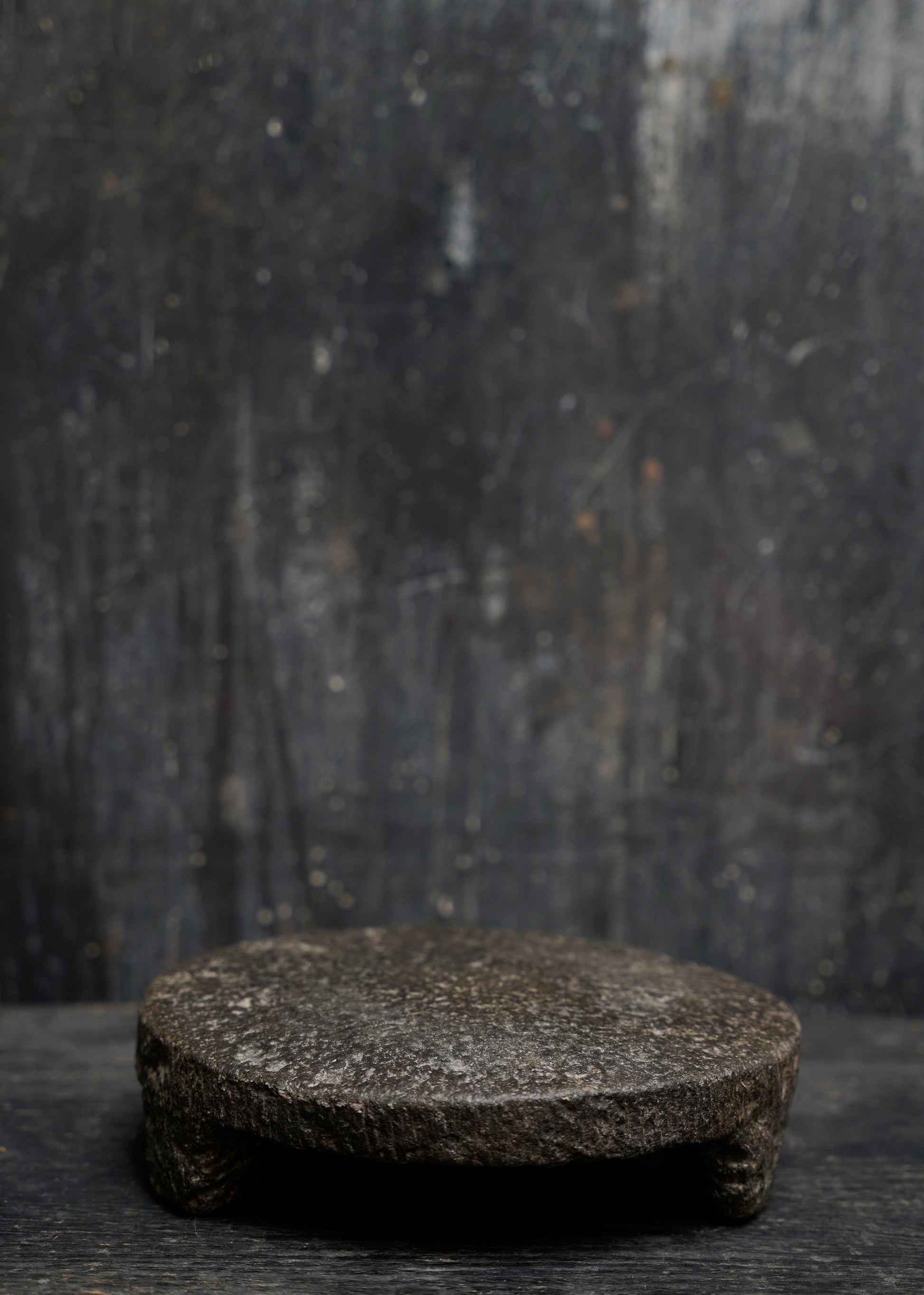Old flat three-legged stone board from Asia. The board is carved from a solid piece of stone and has a beautiful patina.