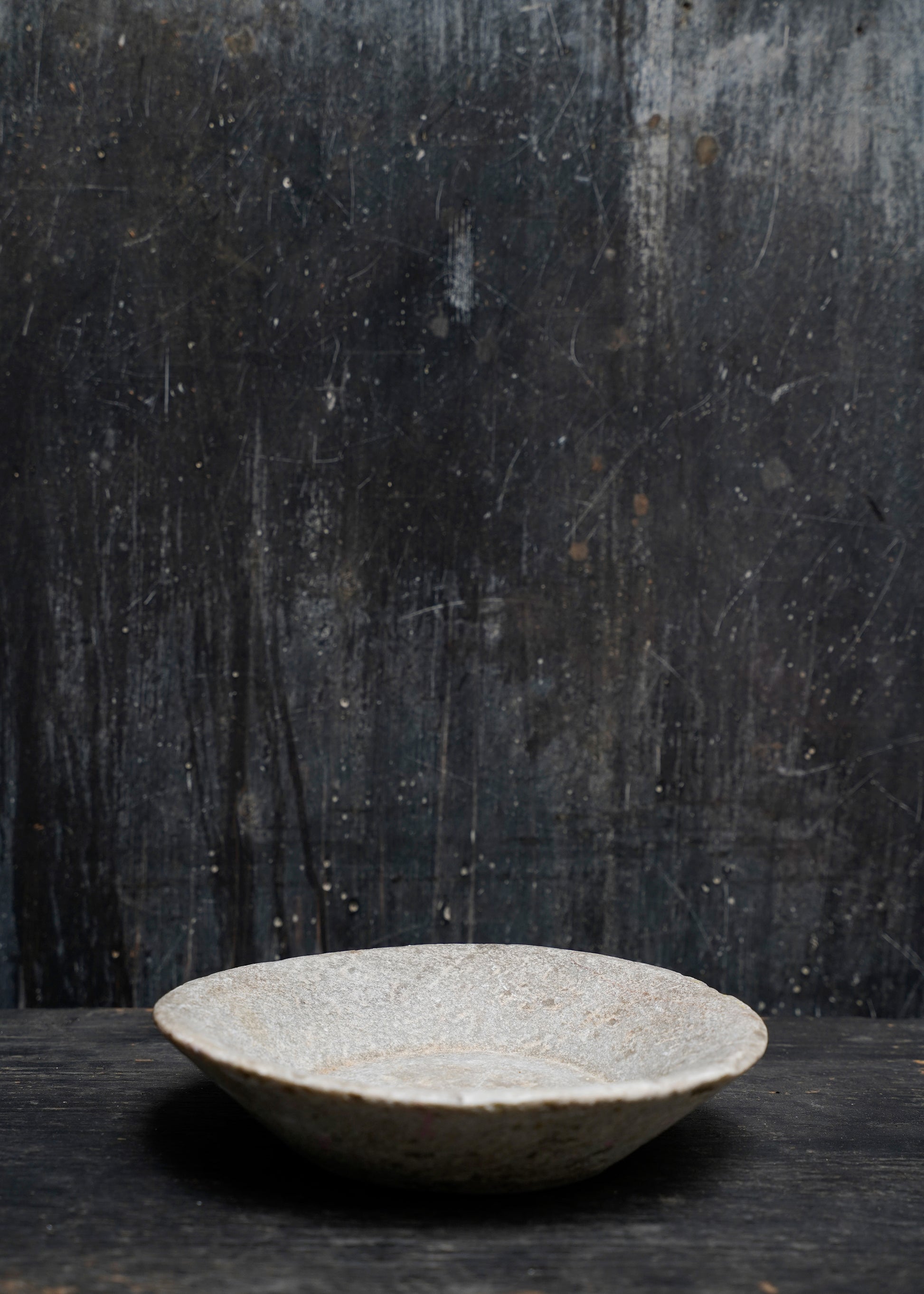 One-of-a-kind bowl carved in natural stone with aged patina.