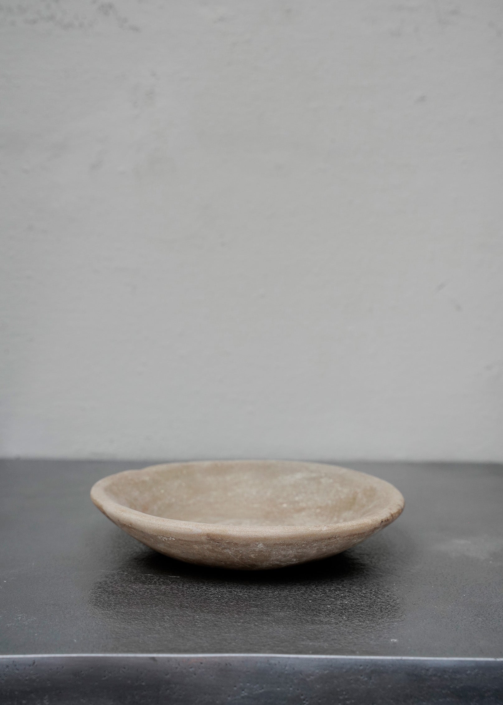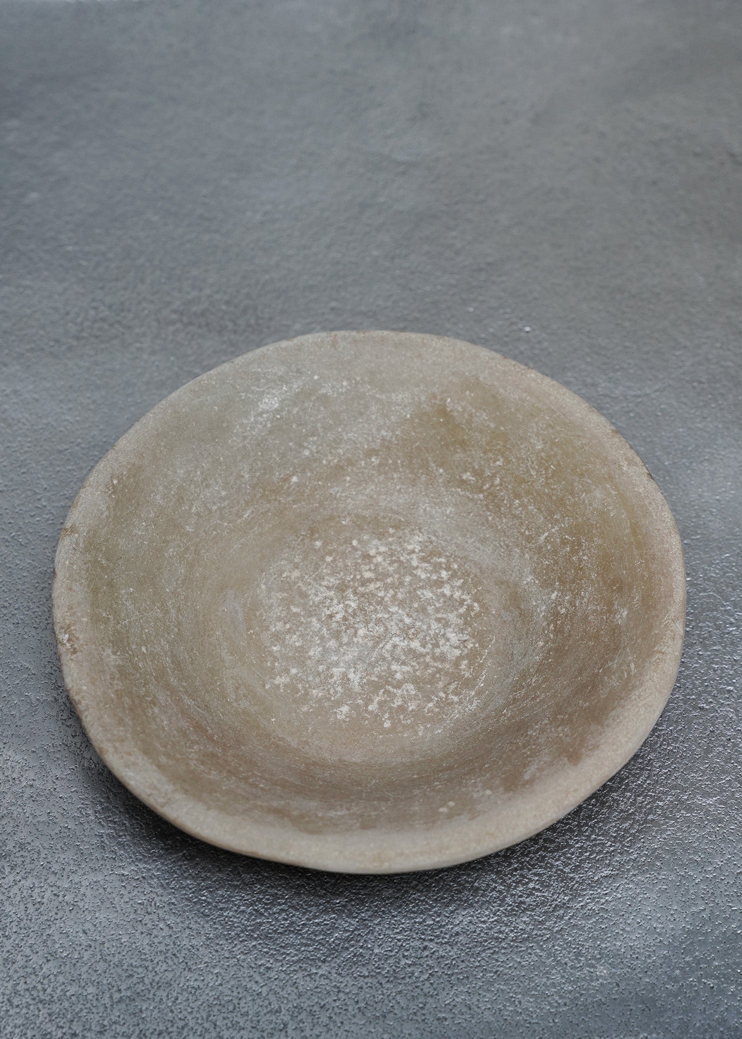 One-of-a-kind bowl carved in natural stone with aged patina.