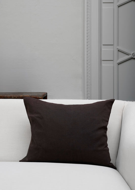 Soft linen bedspread in the color “Bruno” – a beautiful dark chocolate color. The bedspread is from the Italian brand Society Limonta and has been hand dyed after sewing which makes the textile and thread exactly the same color. The Society linen bedspread in Bruno beautifully drapes over a bed and brings warmth and elegance to any bedroom.