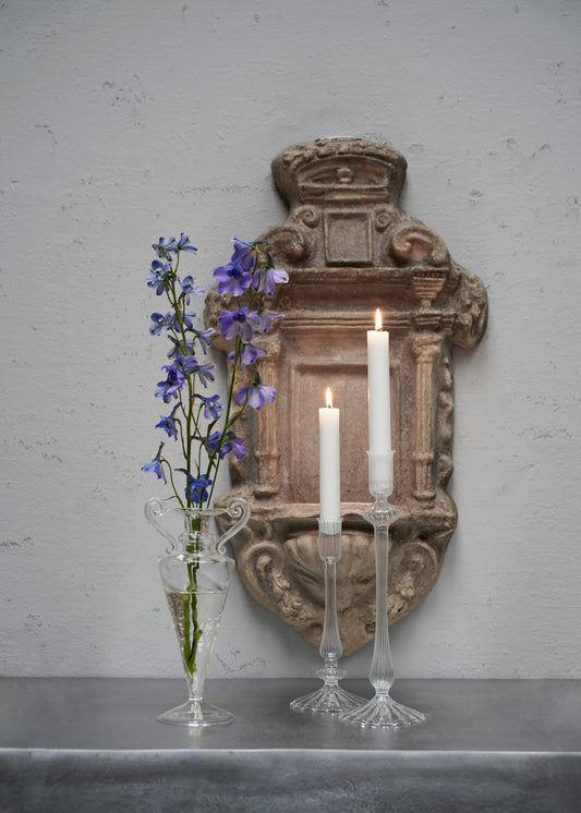 Beautiful lightweight mouth blown glass vase for one flower. Each is handmade.