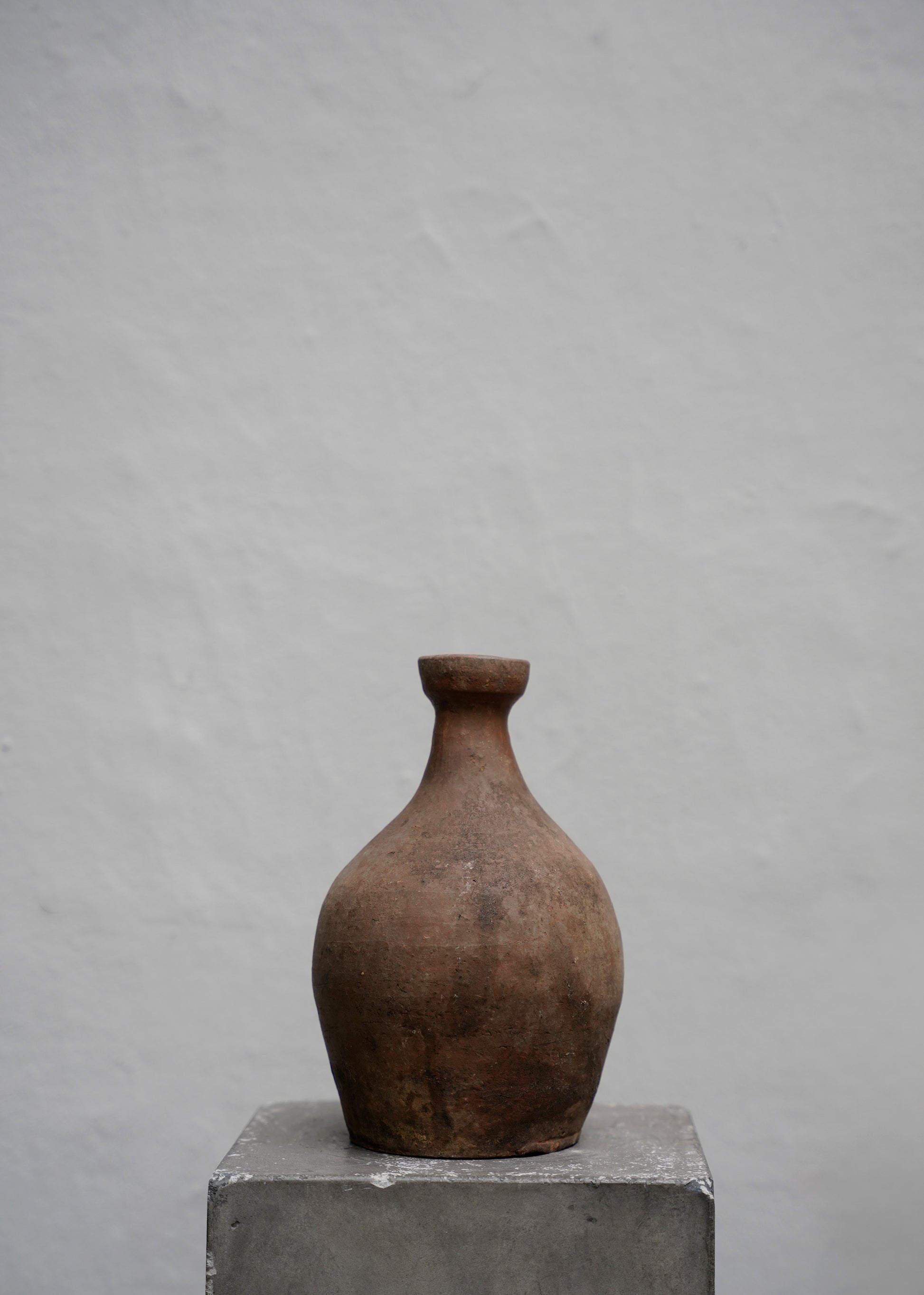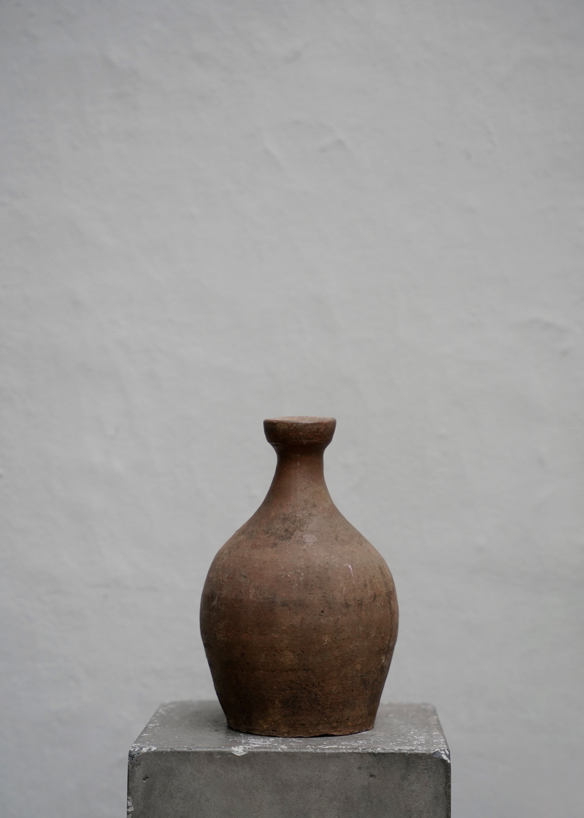 One of a kind old bottle in burned clay from Japan originally used for wine. The bottle has dark brown color with a beautiful patina.