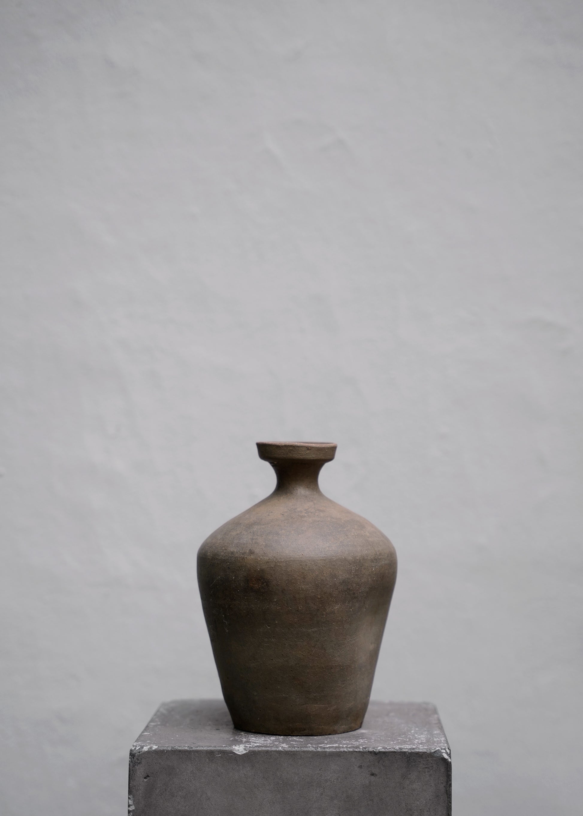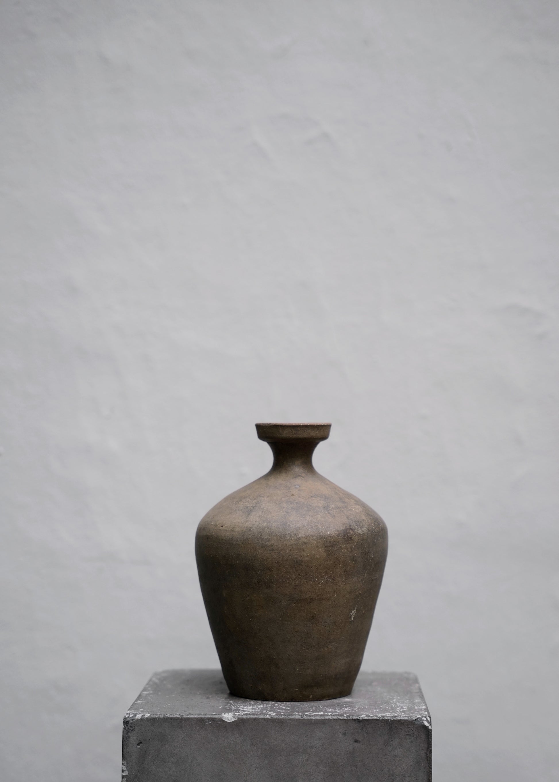 One of a kind old bottle in burned clay from Japan originally used for wine. The bottle has dark brown color with a beautiful patina.