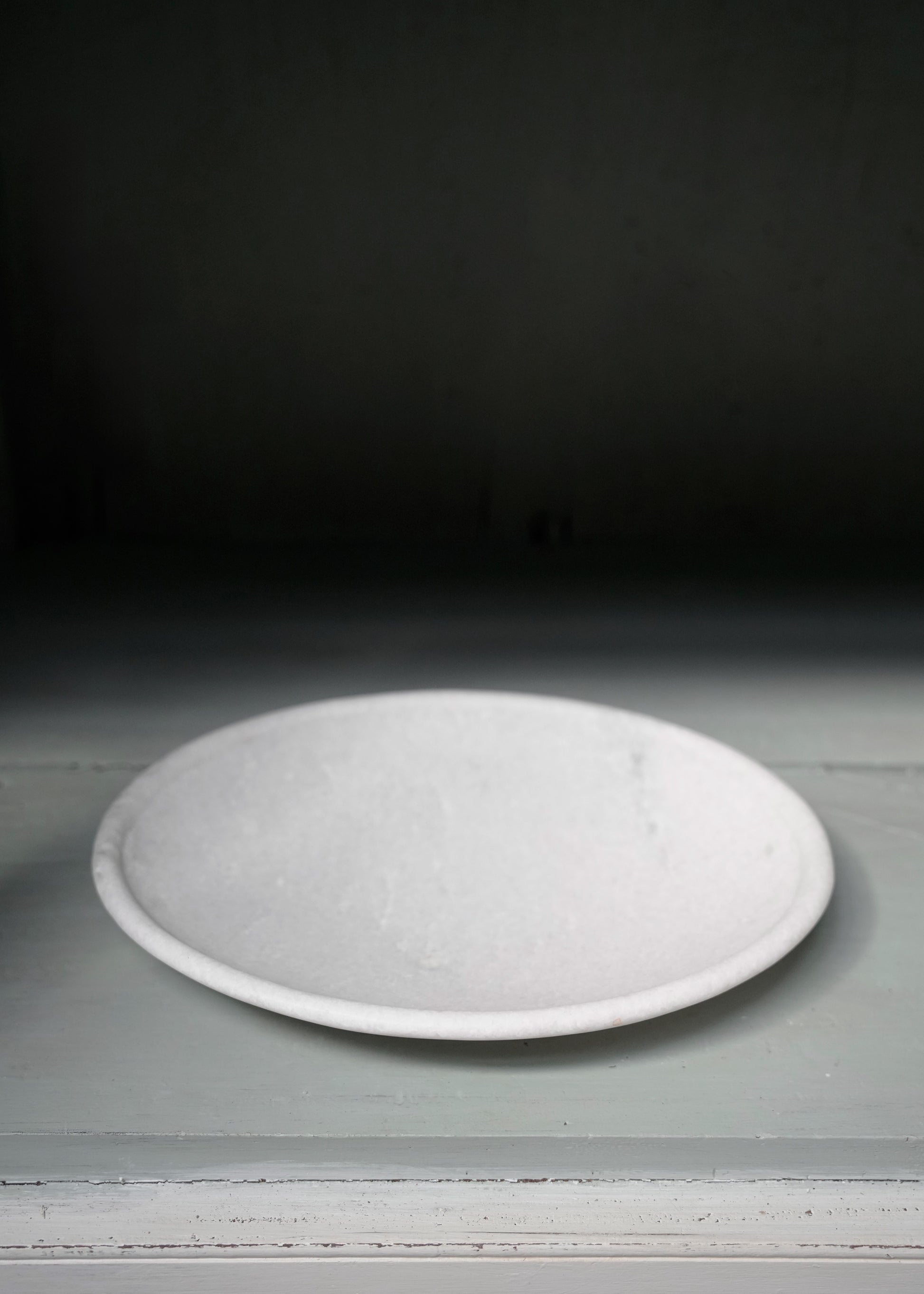 A beautiful serving piece crafted from solid marble, each plate is hand-carved with subtle variations that highlight the natural stone.