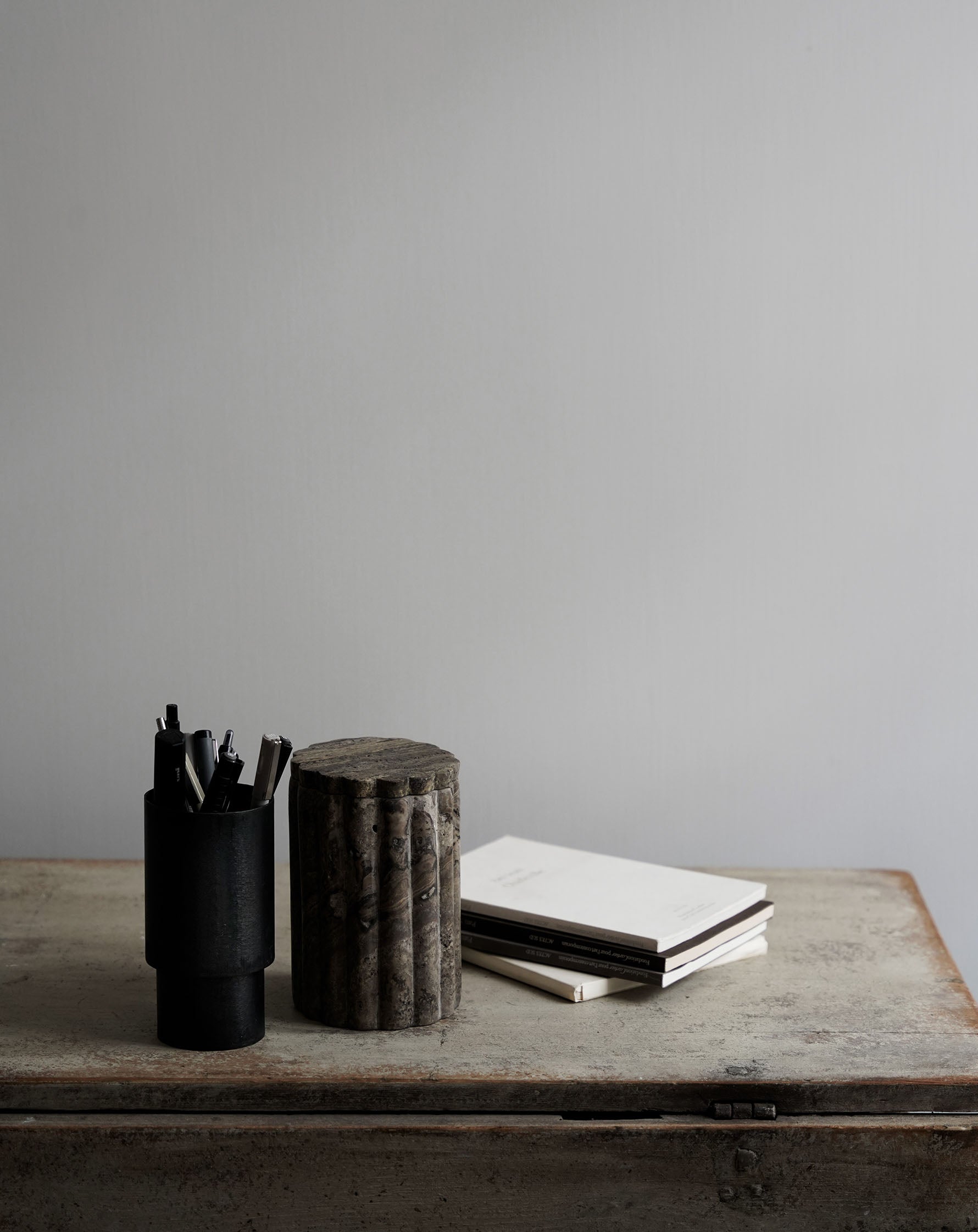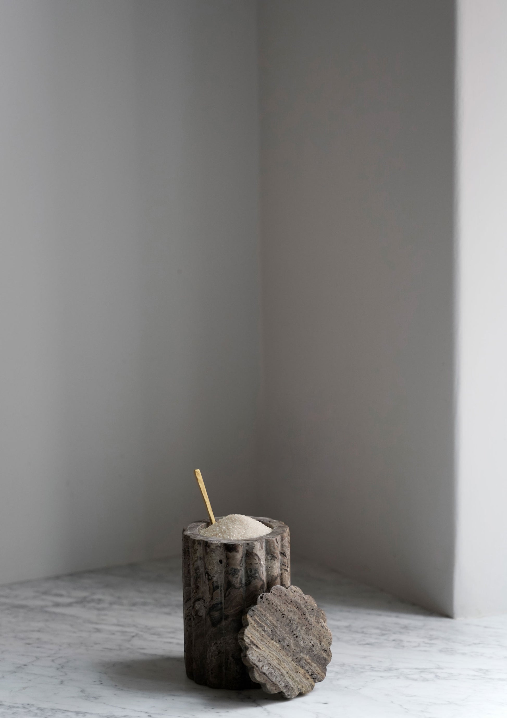 Beautiful travertine jar with lid.